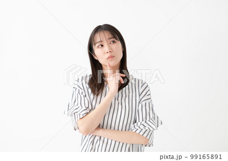 悩む 女性 白バック