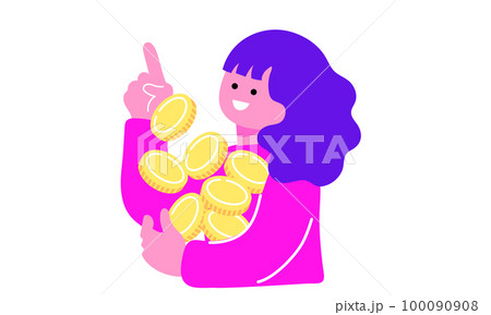 コインを手のひらに乗せる笑顔の女性のイラスト