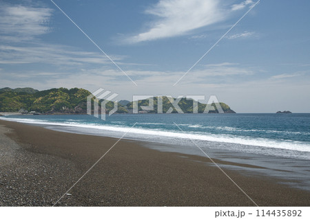 七里御浜から磯崎町・魔見ヶ島を望む 【三重県熊野市井戸町】