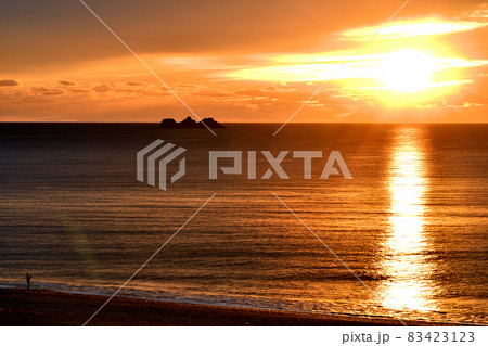 七里御浜の日の出(魔見ヶ島を望む) 【三重県熊野市】