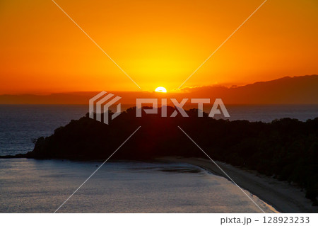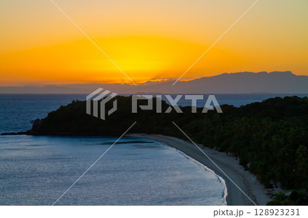 オセアニア フィジー共和国ビティレブ島の西の沖合いママヌザ諸島マナ島の展望台からノースビーチの夜明け