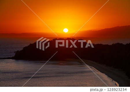 オセアニア フィジー共和国ビティレブ島の西の沖合いママヌザ諸島マナ島の展望台からノースビーチの夜明け