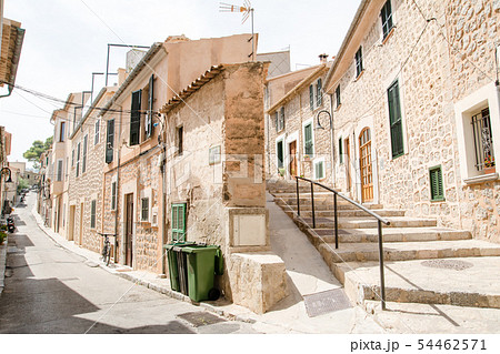 Beautiful street in Valldemossa, famous old mediterranean village of Majorca Spain.