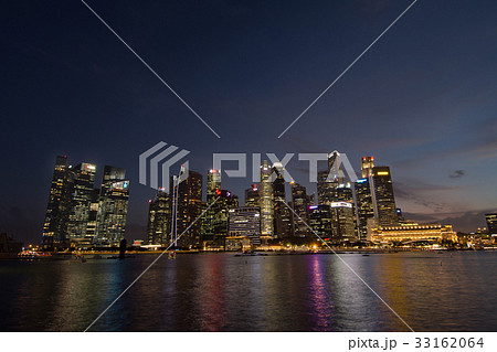 シンガポールのマリナベイの夜景・ビジネス街並みの高層ビル