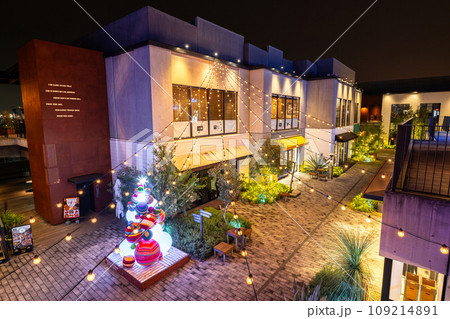 都市夜景 横浜 ベイエリアの商業施設(オープンモール)のエントランス