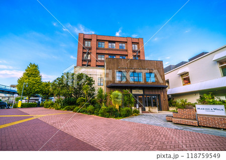都市風景 横浜 ベイエリアの商業施設(オープンモール)のエントランス