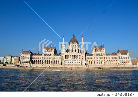 ドナウ川からみたブダペスト市に建つハンガリー国会議事堂
