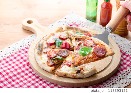 窯で焼くイタリアンピザ Italian delicious food mixture pizza
