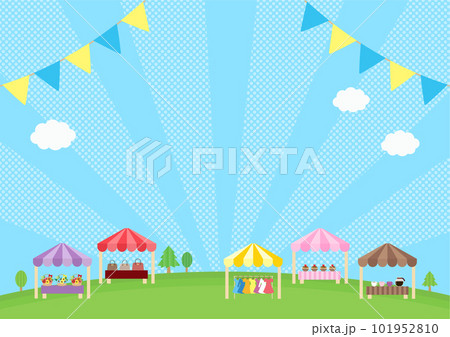 可愛いマルシェ アウトドアイベントのデザインフレーム ベクターイラストセット