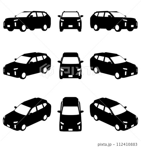 自動車のイラスト素材 オーソドックスなSUV(1) シルエット カット集(1)9点セット