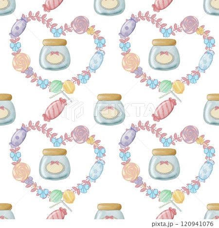 Seamless Pattern Assorted lollipop candies in a Glass jar. hand drawn cartoon style.