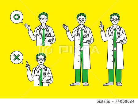 ○×マークのプラカードを掲げる医師の男性