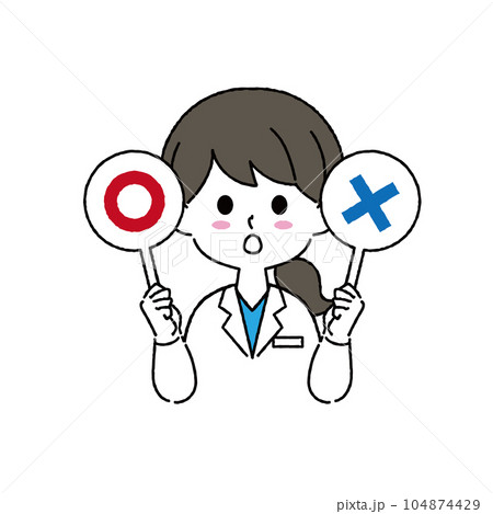 マルバツ札を持つ女性の医者イラスト