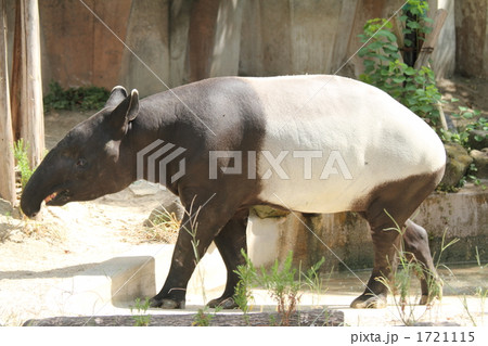 動物園の飼育スペースに1頭のマレーバクがいる風景