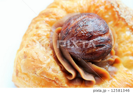 栗の餡子が入った菓子パン【白背景・切り抜き】