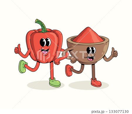 bell pepper and powder character groovy cartoon illustration