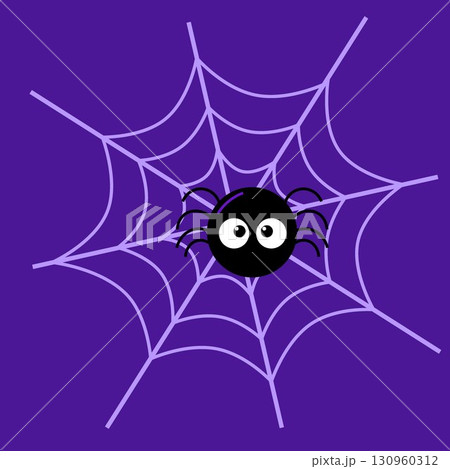 Cute Halloween Spider Cartoon Character On A Web. Vector Hand Drawn Illustration Isolated On Transparent Background