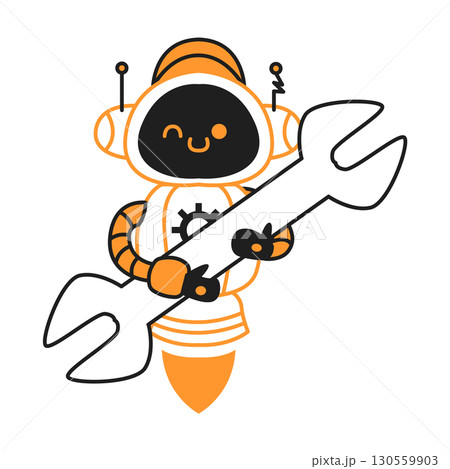 Friendly Cartoon Robot with Giant Wrench