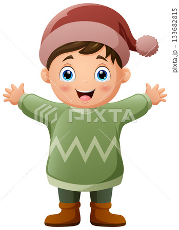 Happy little boy cartoon wearing winter clothes