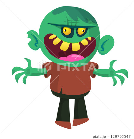 Cartoon funny green zombie character design. Halloween monster vector illustration
