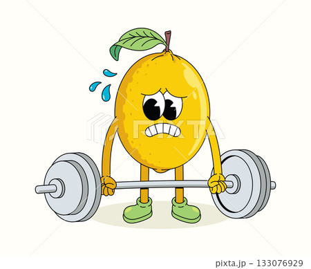 lemon hard weightlifting character groovy cartoon illustration