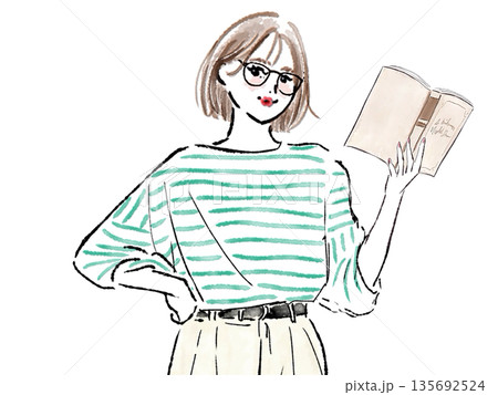 A Woman Reading A Book Cartoon Graphic Vector