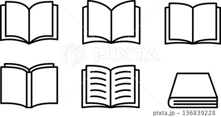 本、マンガ本、電子書籍のアイコンマーク、線画ベクターイラスト白黒素材セット