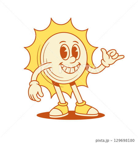 Cute yellow sun cartoon character surf relax gesture contoured vector flat illustration