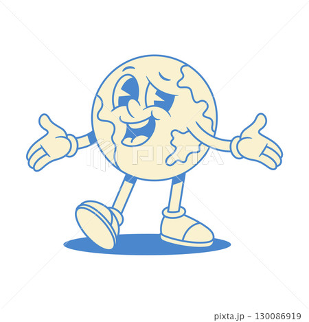 Cheerful comic globe Earth cartoon character welcome contoured vector flat illustration
