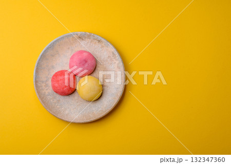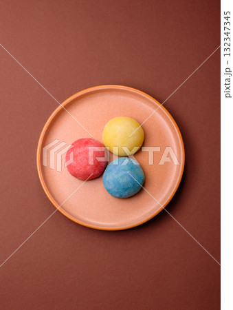 Japanese mochi, ice cream or Asian sweets with fruit filling. Mochi of different colors