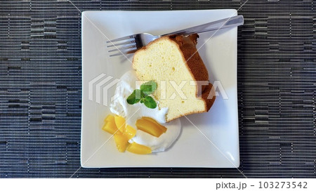 マンゴータルトレットとパウンドケーキのティータイム(ハイアングル)
