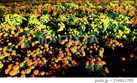 千葉県東京ドイツ村の夜のマリーゴールド畑