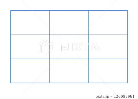 9マスに分割した長方形のグリッド素材 - 3×3 のフレームのシンプルな表組みや図のテンプレート