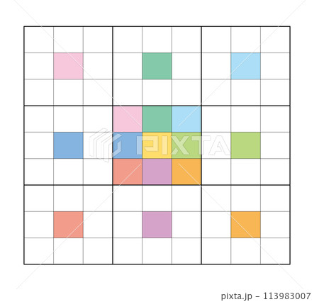 9マスに分割した正方形のグリッド素材 - 3×3 のフレームのシンプルな表組みや図のテンプレート
