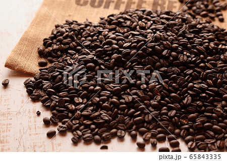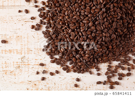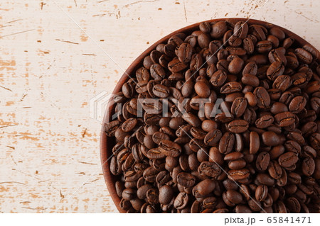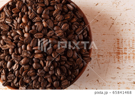 コーヒー豆 (珈琲豆 小粒 焙煎 飲食 実 飲み物 ドリンク ブレンド カフェイン コピースペース)