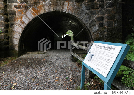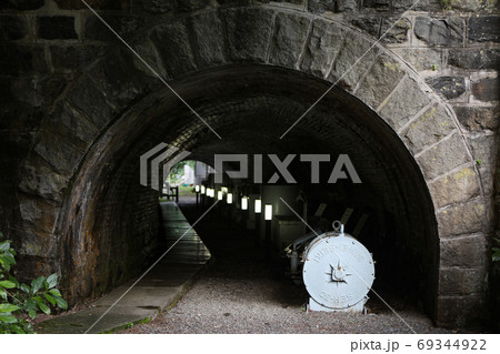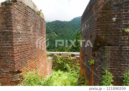 別子銅山の産業遺産「東平」大マンプを採鉱本部跡側から見る