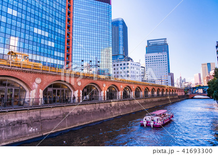 日本の東京都市景観 万世橋からマーチエキュートや神田川を望む(奥は御茶ノ水駅方向)