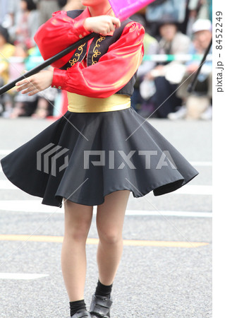 運動会でのマーチングバンドでカラーガードを演じている女の子を撮影