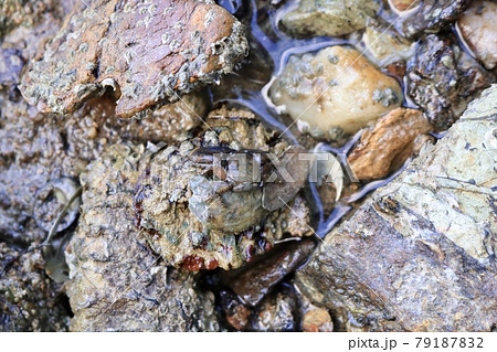 海岸の小石に紛れてカモフラージュしている小さな蟹【ニュージーランド】