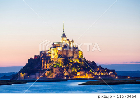 Mont Saint-Michel in twilight at dusk, Normandy, France