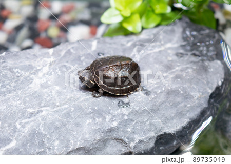 石の上で休むアカミミガメ
