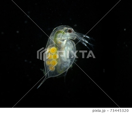 ミジンコ 斜め前向き 卵持ち 黒バック