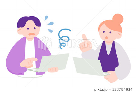 うっかりミスに気付く、ビジネスマンのベクターイラスト素材_男女セット_カラー