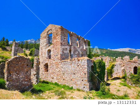 Ruins of old town in Mystras, Greece