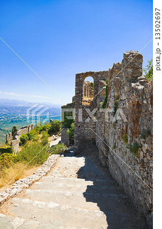Ruins of old fort in Mystras, Greece