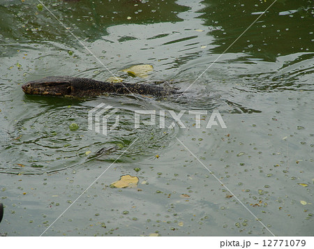 泳ぐ「ミズオオトカゲ」(バンコク・ルンピニー公園/タイ)