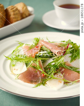 大根と水菜、生ハムのサラダ(ハイアングル)