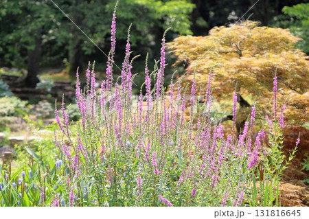 自然教育園でミソハギとモンシロチョウ(東京都港区)