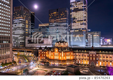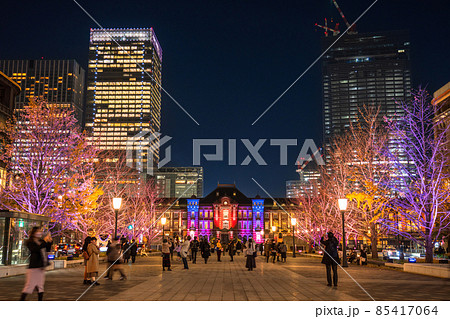 イルミネーションの東京駅と丸の内ビジネス街 東京夜景