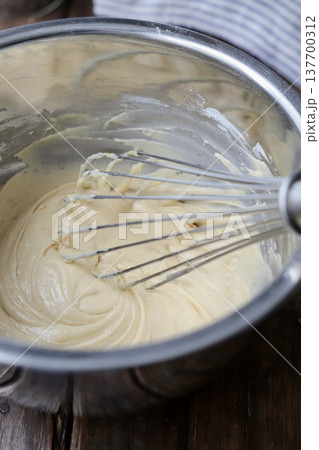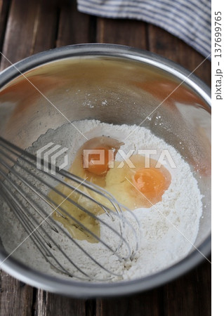 ボールに入れたホットケーキミックスのイメージ (写真素材)